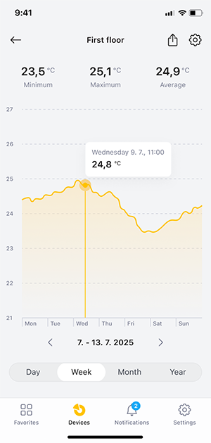 - Detailed analysis: You can easily evaluate trends and deviations in temperatures and consumption. For example, you can compare multiple time periods or compare devices with each other.